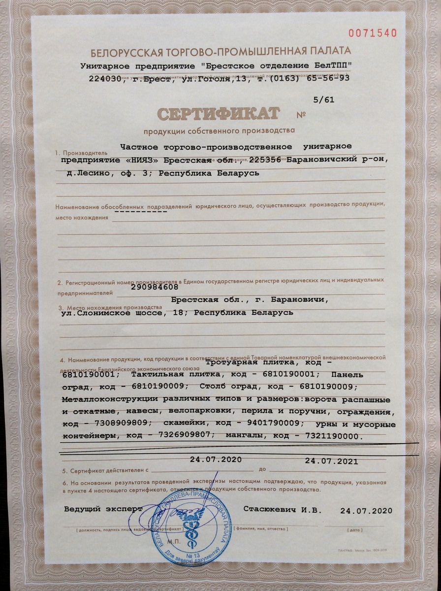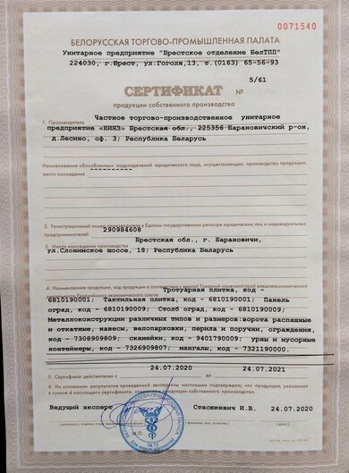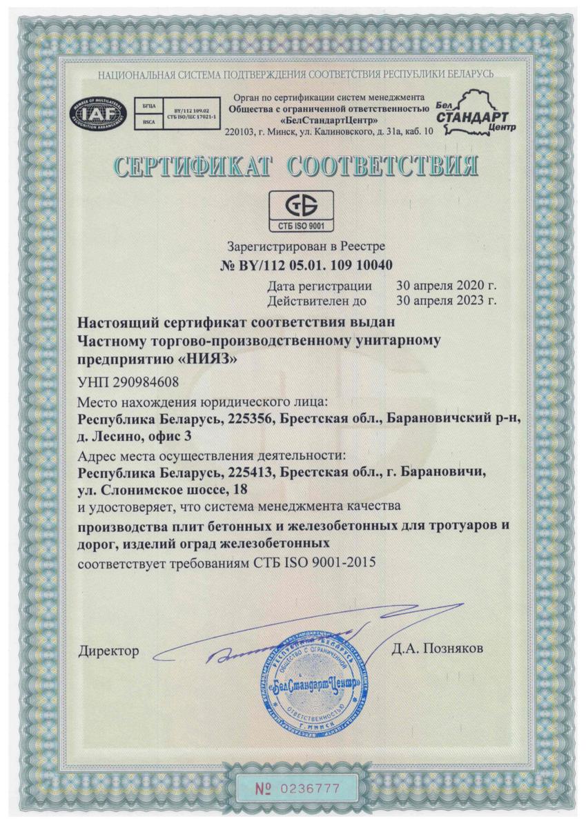 ЧТПУП «НИЯЗ-ГРУПП» специализируется на производстве железобетонных изделий. Ассортимент нашей организации это: тротуарная плитка, цветная тротуарная плитка вибропрессованная, вибролитьевая, тактильная плитка для слепых и слабовидящих, декоративные заборы «под мрамор», ажурные жб заборы, ворота, калитки, козырьки, навесы.